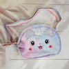 - Shape and Character: The bag is shaped like a cute bunny rabbit's face. It has round, cartoonish eyes, a small red nose and mouth, and rosy cheek details.